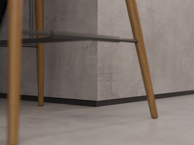 O rodapé invertido, também conhecido como rodapé flutuante, é o mais ousado e diferente entre os três estilos. Nesse modelo, o rodapé é instalado dentro da parede e cria um vão entre o chão e a base da parede. Essa forma de aplicação dá a impressão de que a parede está “flutuando”. O resultado é extremamente moderno e sofisticado, trazendo leveza e personalidade para o espaço. Uma das grandes vantagens é a possibilidade de embutir iluminação nesse espaço para produzir um efeito cênico no ambiente. Por outro lado, o projeto precisa ser muito bem planejado e executado, uma vez que qualquer falha pode comprometer o acabamento.