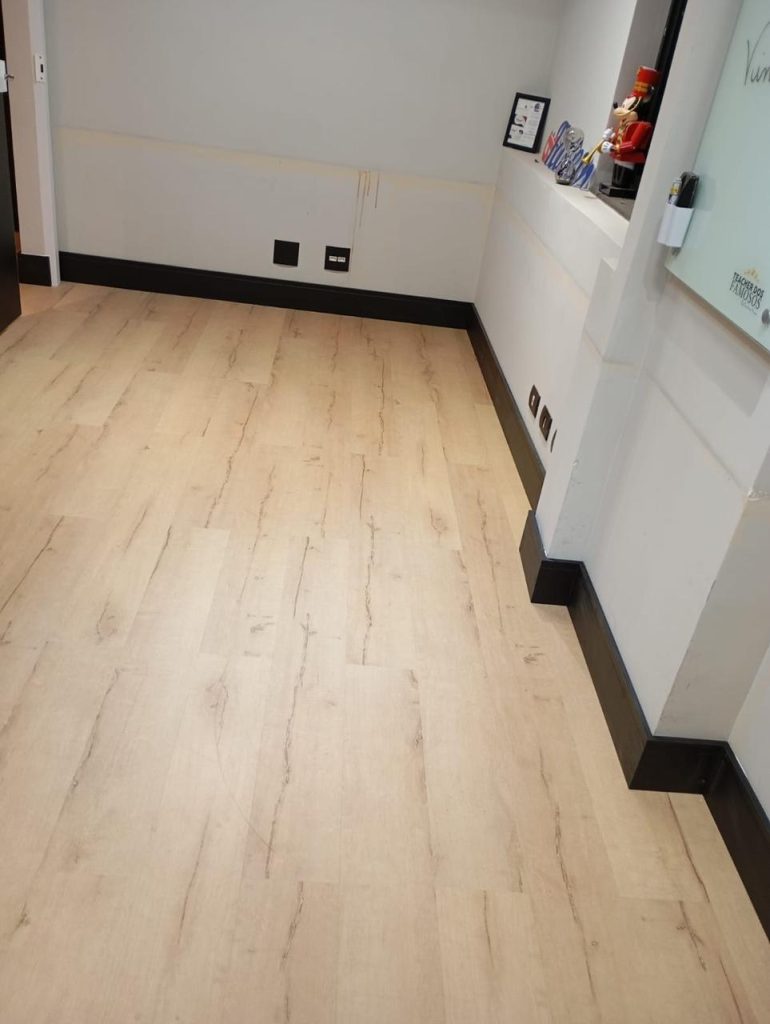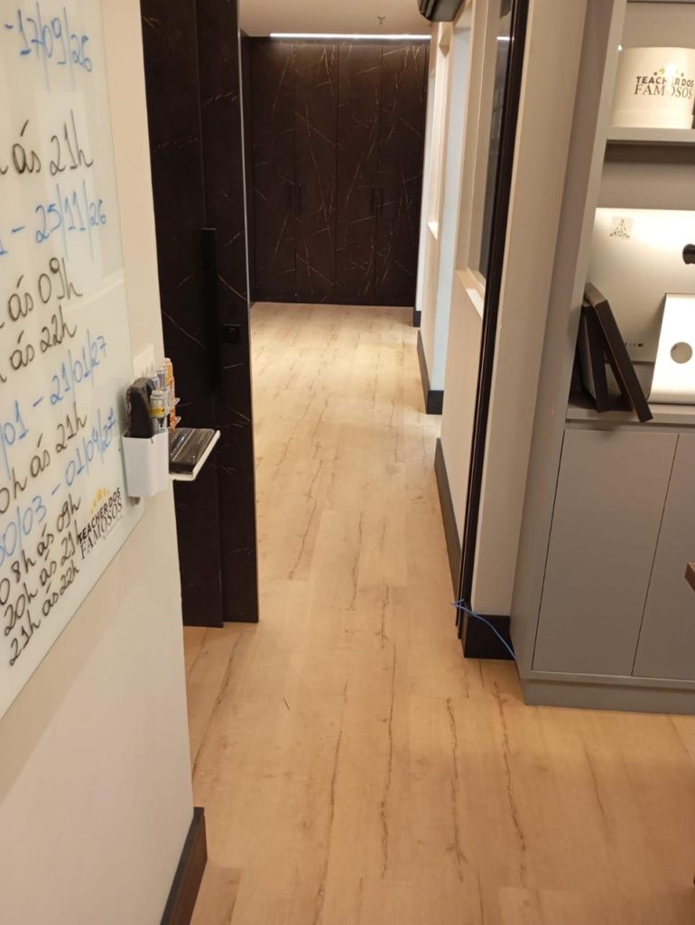 A escolha do vinílico da OspeFloor garante não apenas uma estética moderna e sofisticada, mas também uma solução robusta. Esse tipo de piso é conhecido por sua alta durabilidade, praticidade na limpeza e resistência ao desgaste, características essenciais para qualquer área comercial. Além disso, a instalação foi realizada por uma equipe especializada, assegurando um acabamento impecável, rápido e com o menor impacto possível na rotina do negócio.